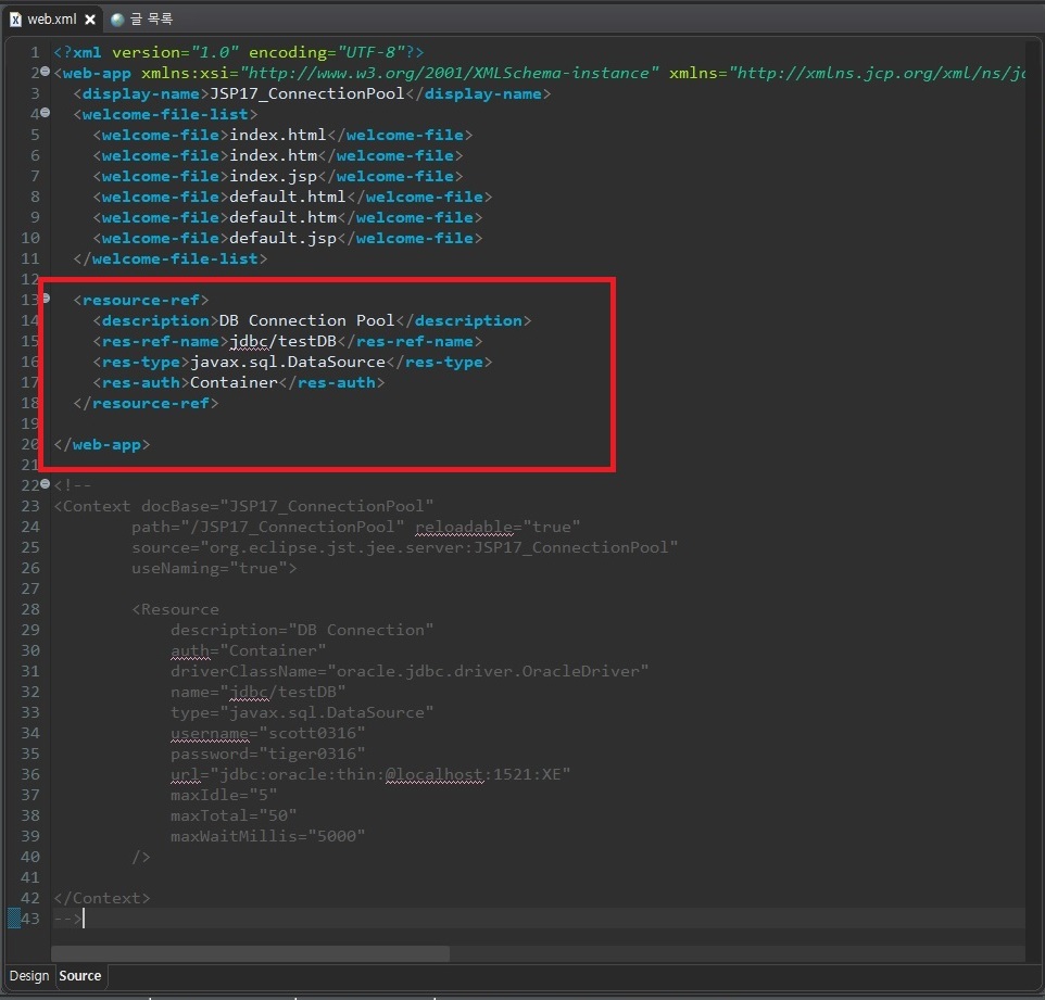 * XML, 초기화 파라미터 등에서 관리하는 것이 좋다.