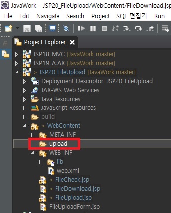 1) WebContent 밑에 upload 폴더 추가