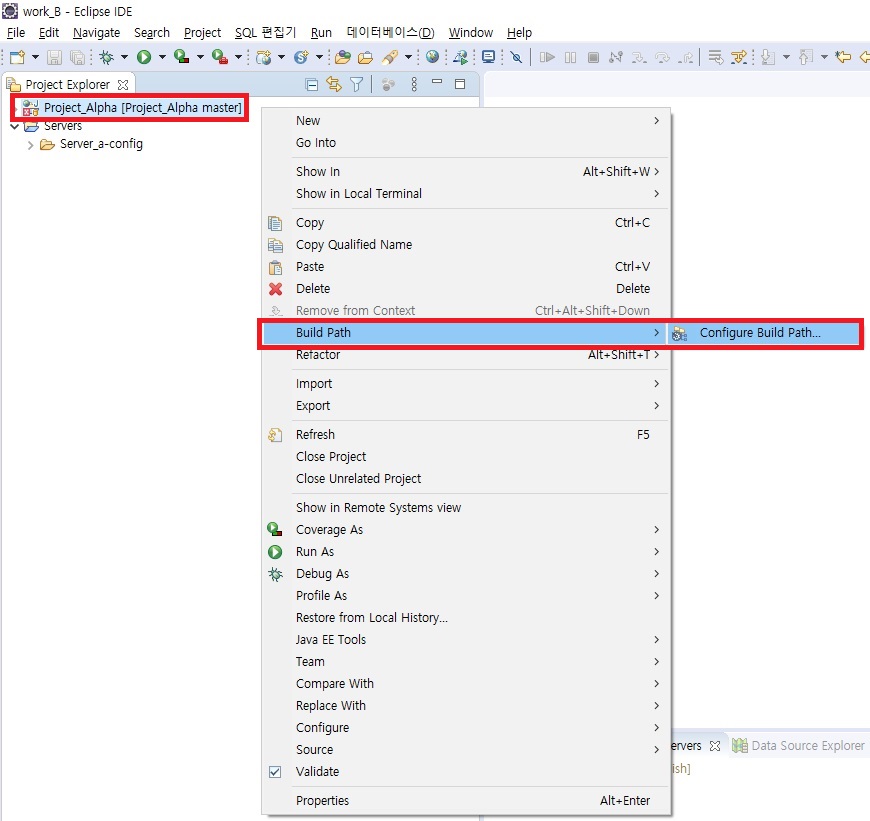 : 프로젝트 우클릭 > Build Path > Configure Build Path... 클릭