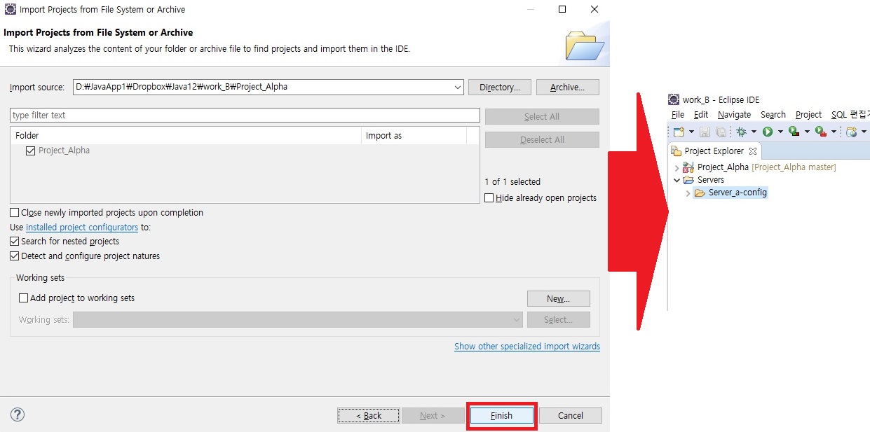 > Server Runtime 선택 > 아까 만들었던 서버 선택 후 Finish 클릭