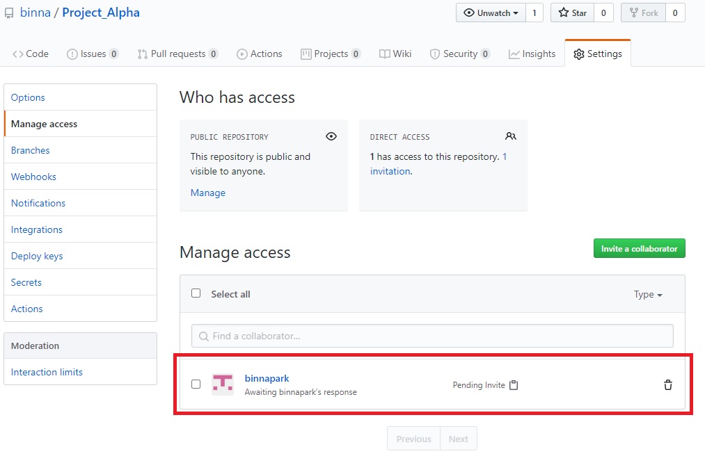 1. GitHub 협업자(Collaborator) 추가