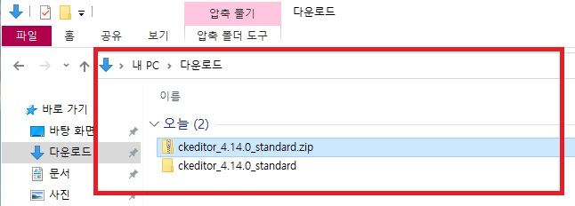 > 다운로드 받은 CKEditor 압축 파일, 압축 풀기