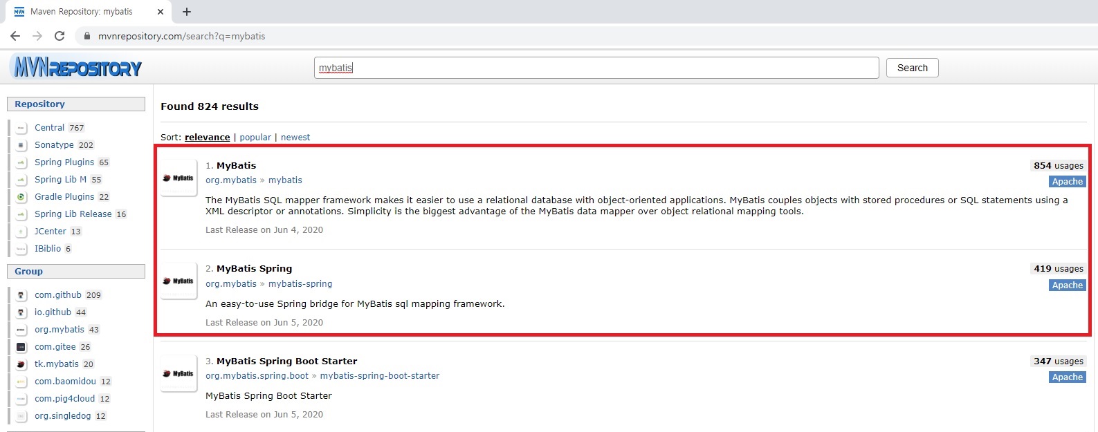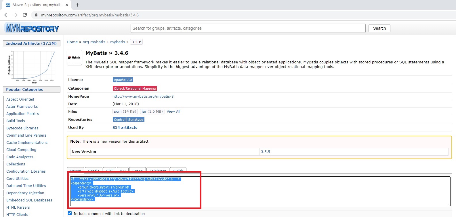 [추가] https://mvnrepository.com 이용, MyBatis 설정
