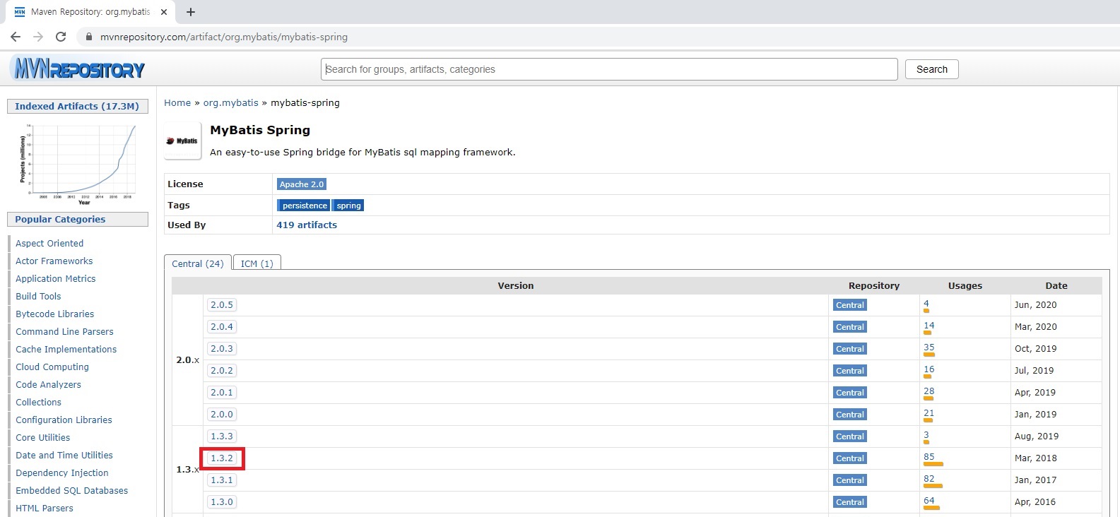 [추가] https://mvnrepository.com 이용, MyBatis Spring 설정