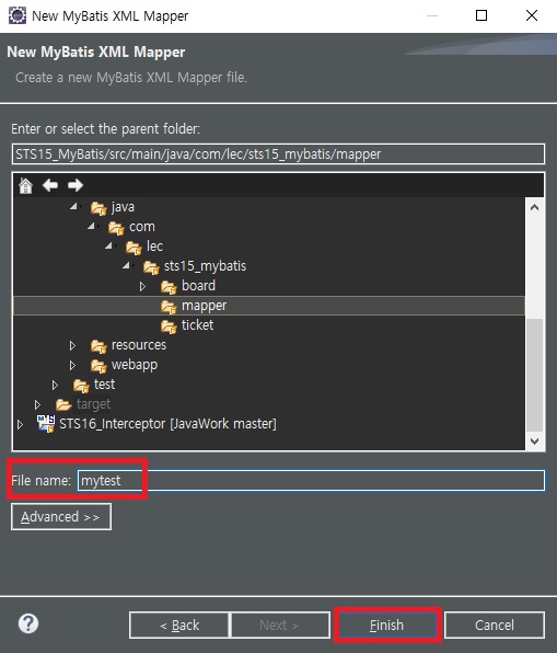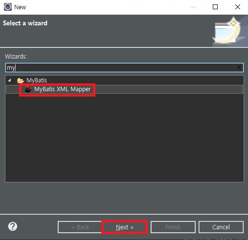 > MyBatis XML Mapper 선택 후 Next 클릭
