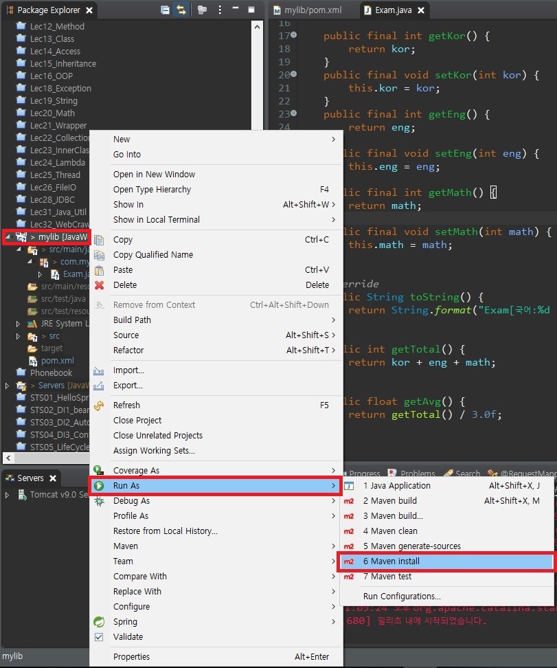 : 프로젝트 선택 후 우클릭 > Run As > Maven install 클릭
