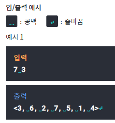 : 첫째줄에 N과 K가 빈 칸을 사이에 두고 순서대로 주어진다