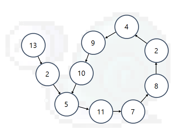 즉, 달팽이 리스트는 다음과 같이 생긴 연결리스트이다. 노드 안의 수는 저장된 값을 뜻한다.