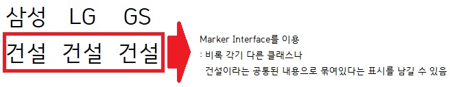 이럴때는 마커 인터페이스를 이용하면 된다(애니메이션이라는 공통분모를 마커 인터페이스를 통해 묶기).