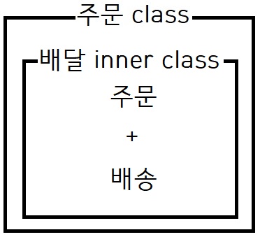 배달inner class 안에 주문과 배달을 편하게 만들 수 있다(+ 캡슐화의 장점은 덤으로 얻어갈 수 있음).