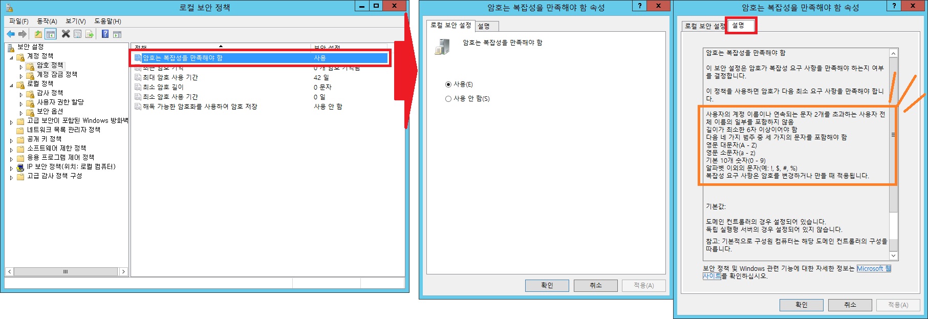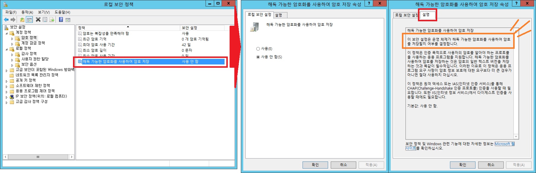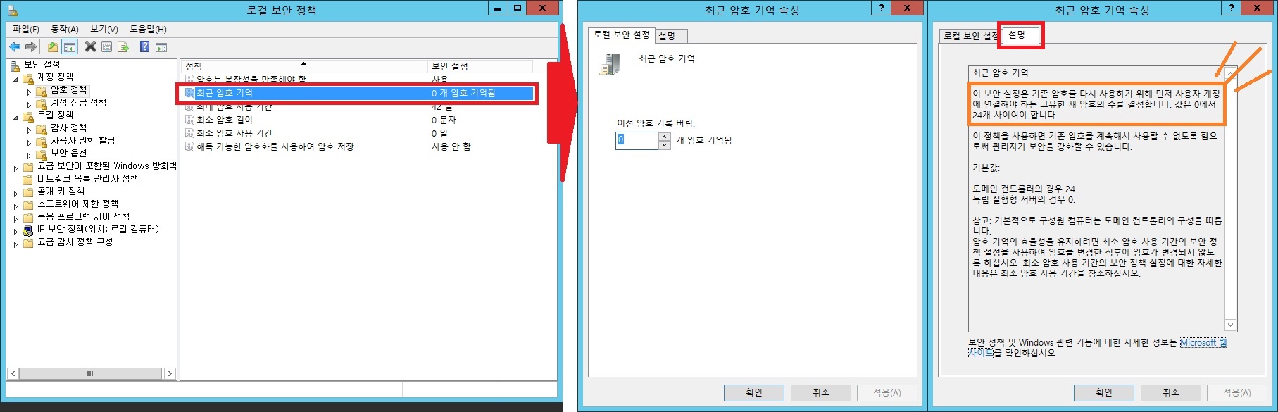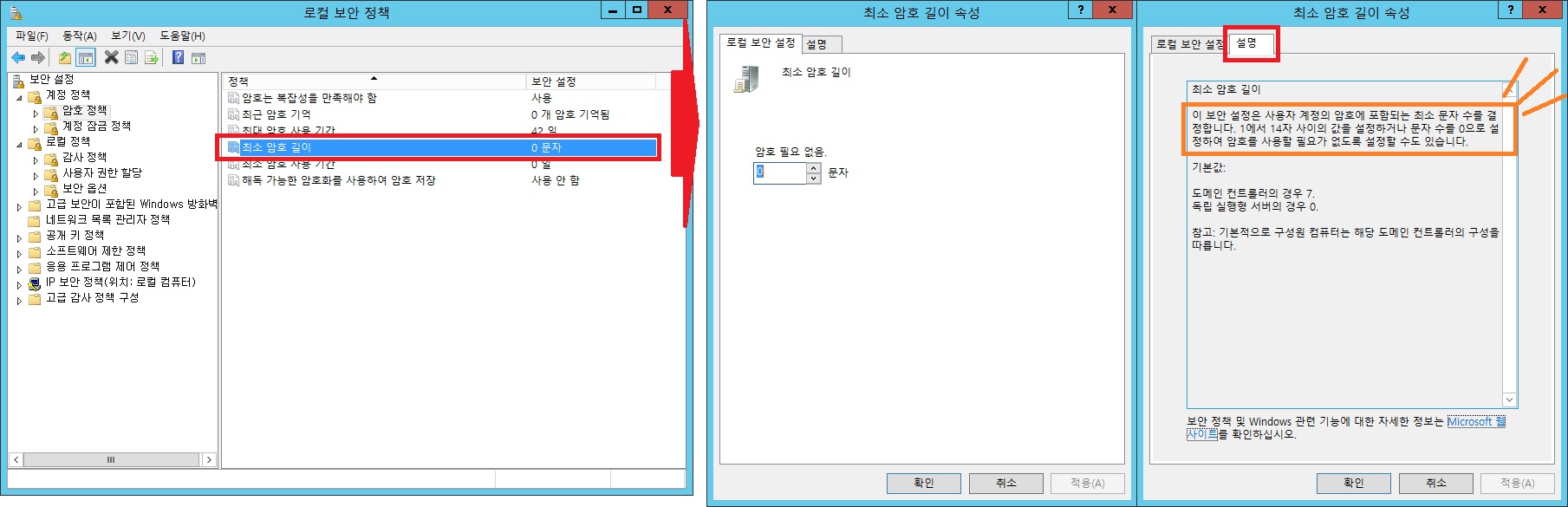 > 계정 정책, 로컬 정책 확인