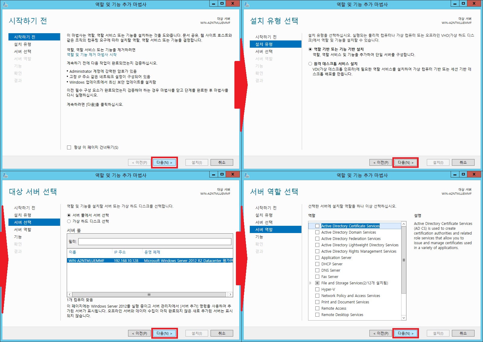 아직 윈도우서버 2012 R2에서 해야할 작업을 하나 빠트렸기 때문이다.