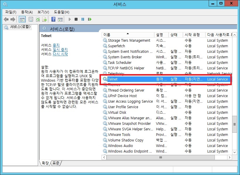 4. telnet 서비스 설정(윈도우서버 2012 R2에서 진행)