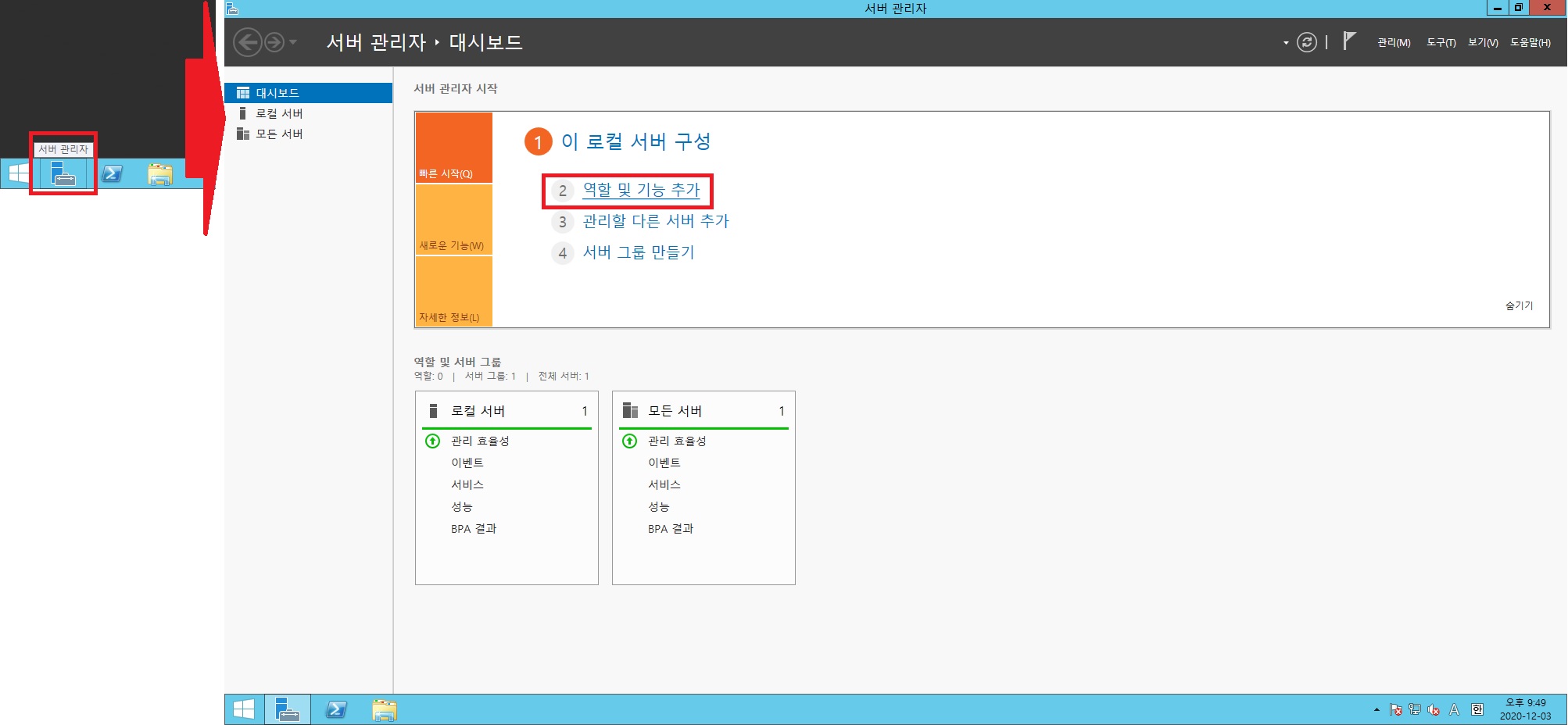 : 작업표시줄에 있는 서버관리자 클릭