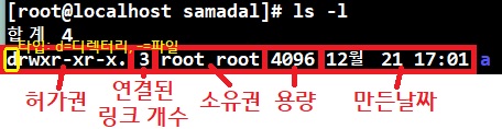③ -la(=-l -a, -al, -a -l) : 현재 디렉터리 안에 숨겨져 있는 내용까지 자세히 출력