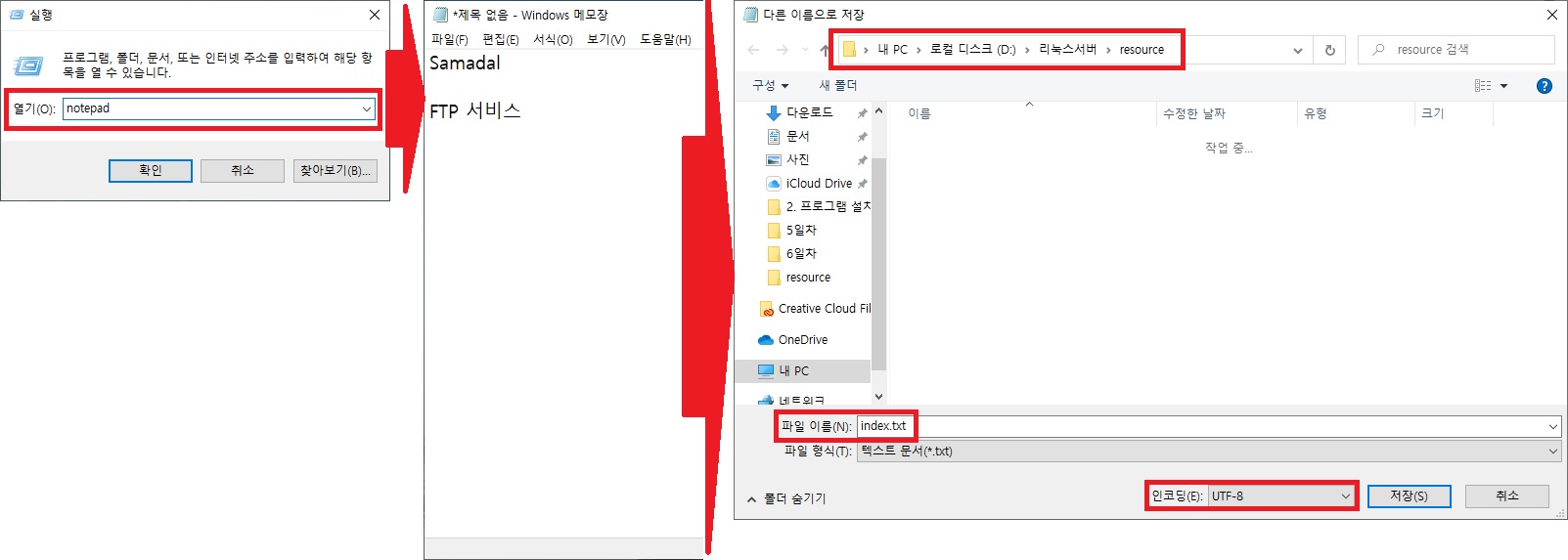 업로드할 파일 만들기(인코딩 UTF-8로 해야 한글 사용 가능)