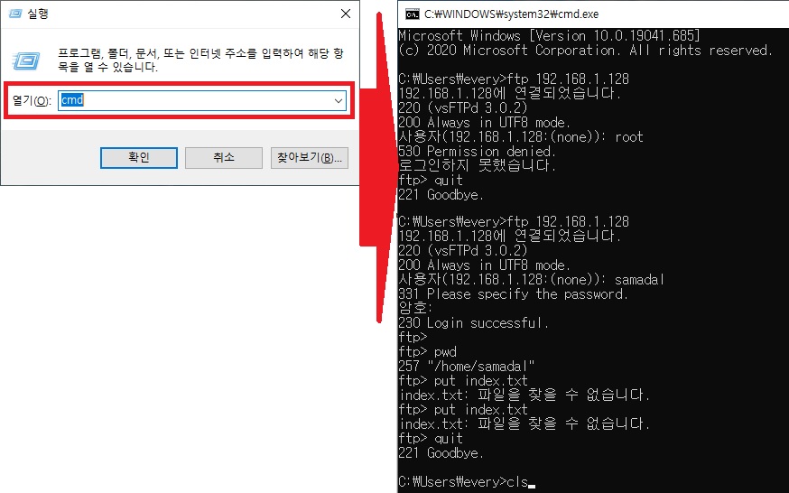2) cmd 창으로 FTP 접속