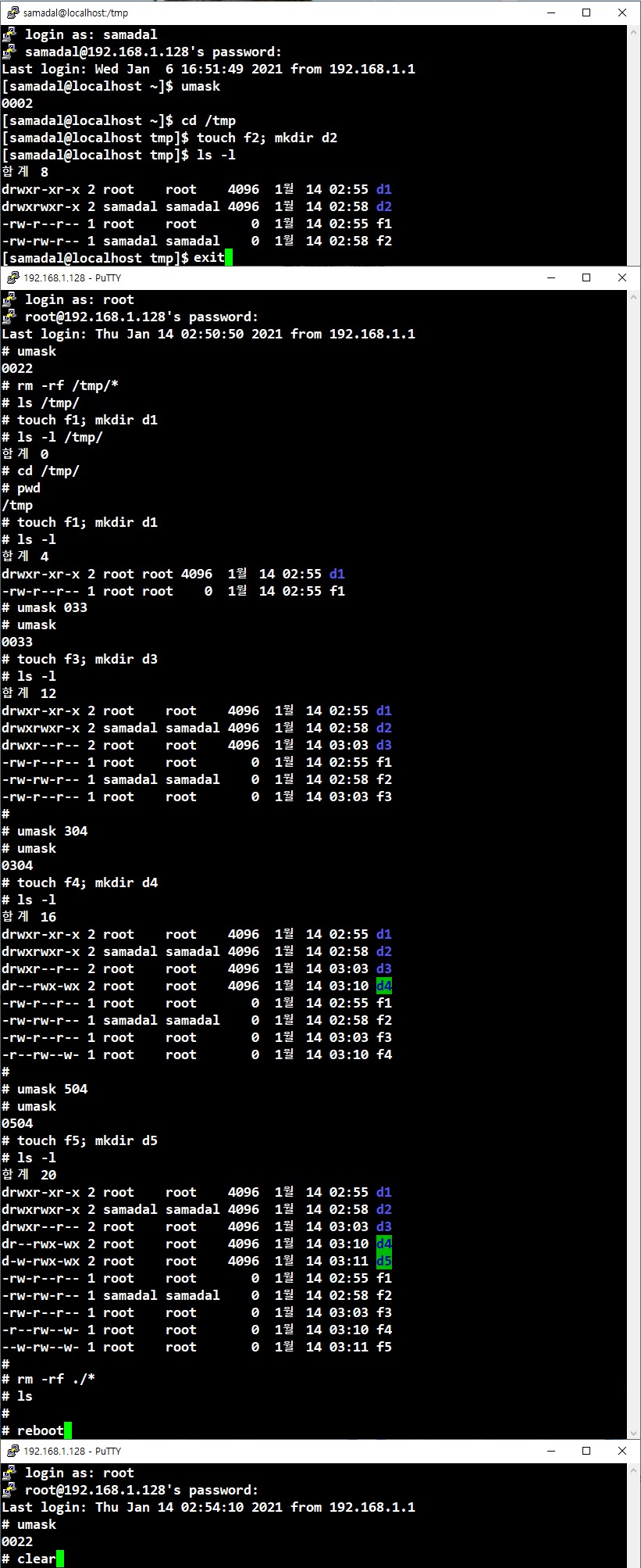 (즉, 자기가 원하는 허가권값으로 적용시켜서 파일 또는 디렉터리 생성할 때 쓰는 명령어)