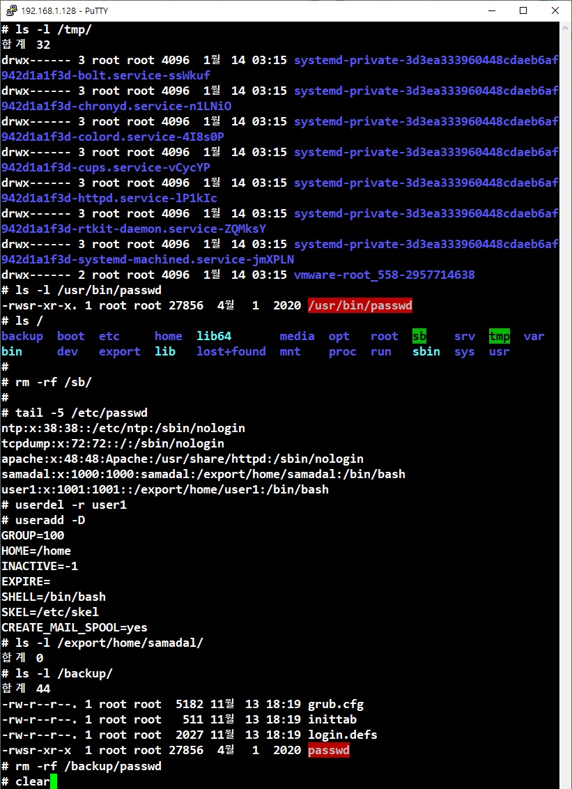 | [리눅스] 사용자계정 수정 및 삭제, 그룹 계정 생성, 수정, 삭제 (0) | 2021.01.03 |