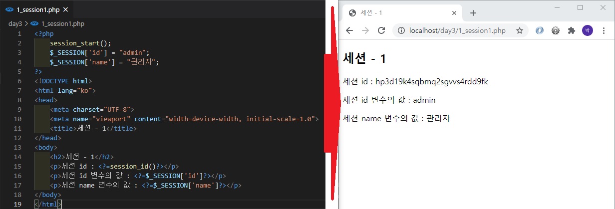 * php에서는 세션을 사용하기 위해 페이지 최상단에 session_start()를 꼭 명시해야 한다.