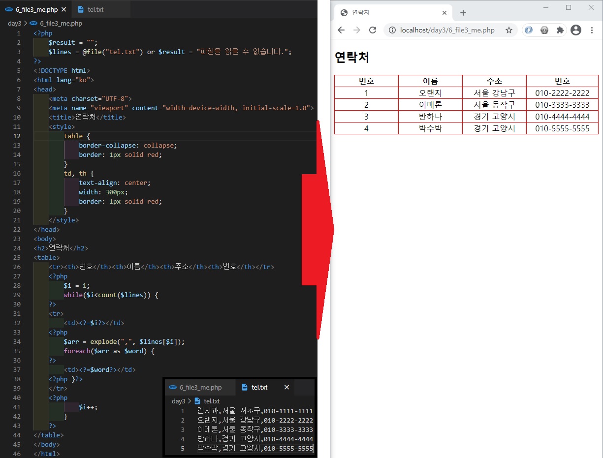 $lines = @file("tel.txt") or $result = "파일을 읽을 수 없습니다.";