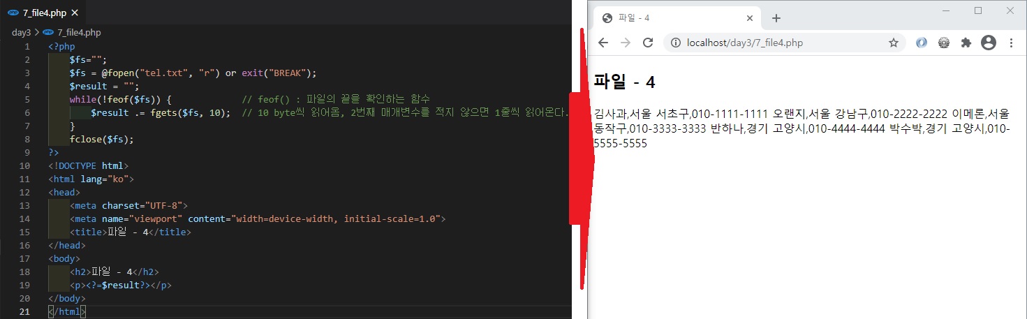 while(!feof($fs)) { // feof() : 파일의 끝을 확인하는 함수