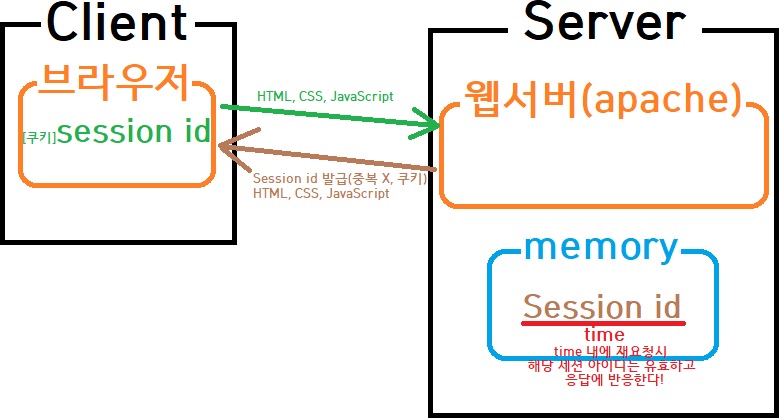 ** 유효시간이 초과하여 다시 접속하게 되면 다시 Session id가 발급되고 이런 경우는 새로 접속한 것과 같다.