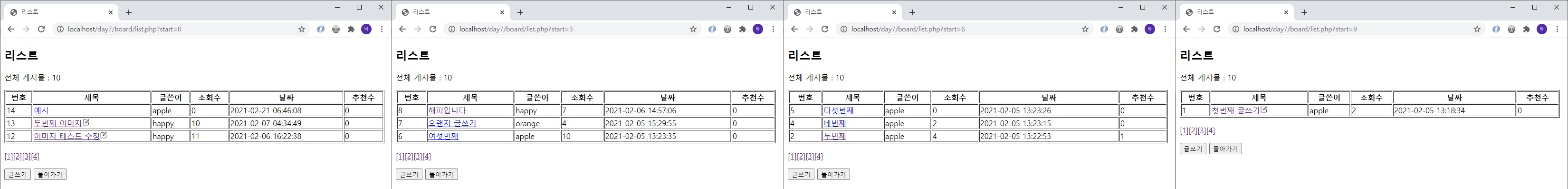 [4page] SELECT * FROM tb_board ORDER BY b_idx DESC LIMIT ((4 - 1) * 3), 3;
