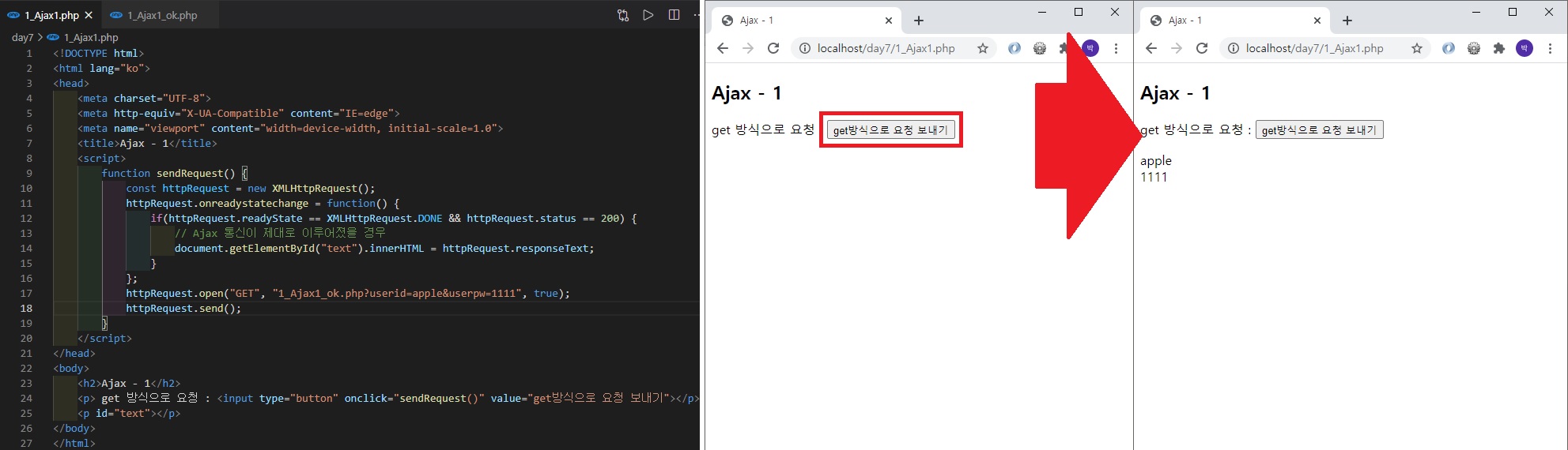 httpRequest.open("GET", "1_Ajax1_ok.php?userid=apple&userpw=1111", true);