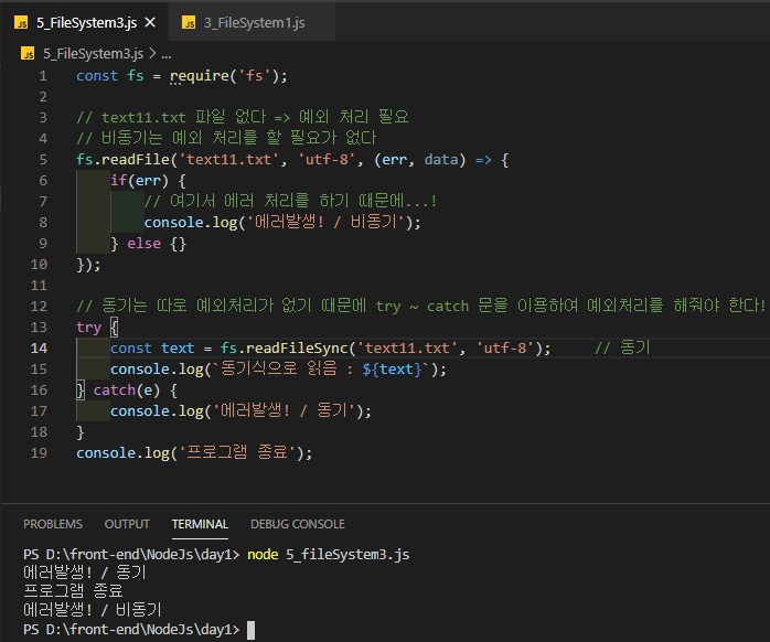 11. 예외 처리(비동기는 예외처리를 할 필요가 없고 동기는 반드시 예외처리를 해야 한다!)