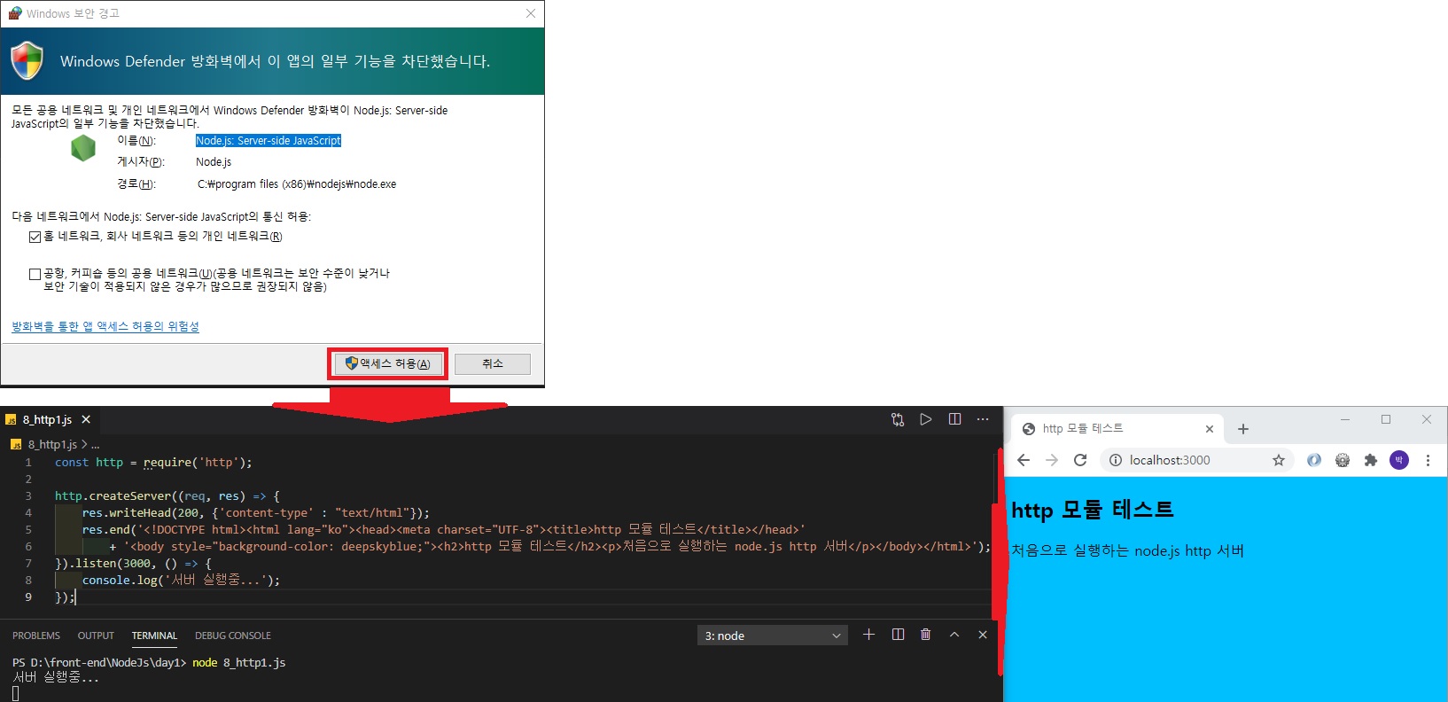 <p>처음으로 실행하는 node.js http 서버</p>