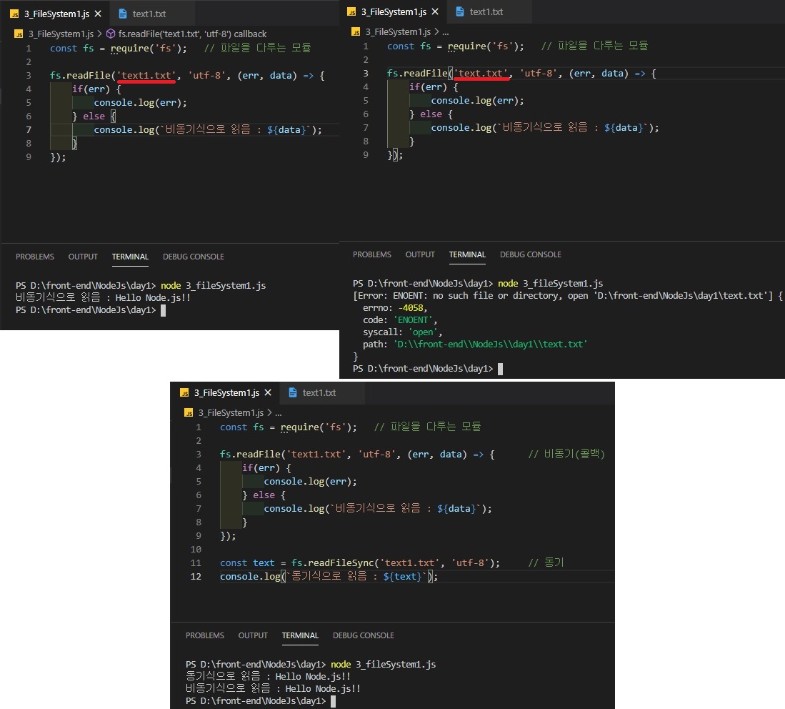 readFileSync() : 파일을 동기적으로 읽는다.