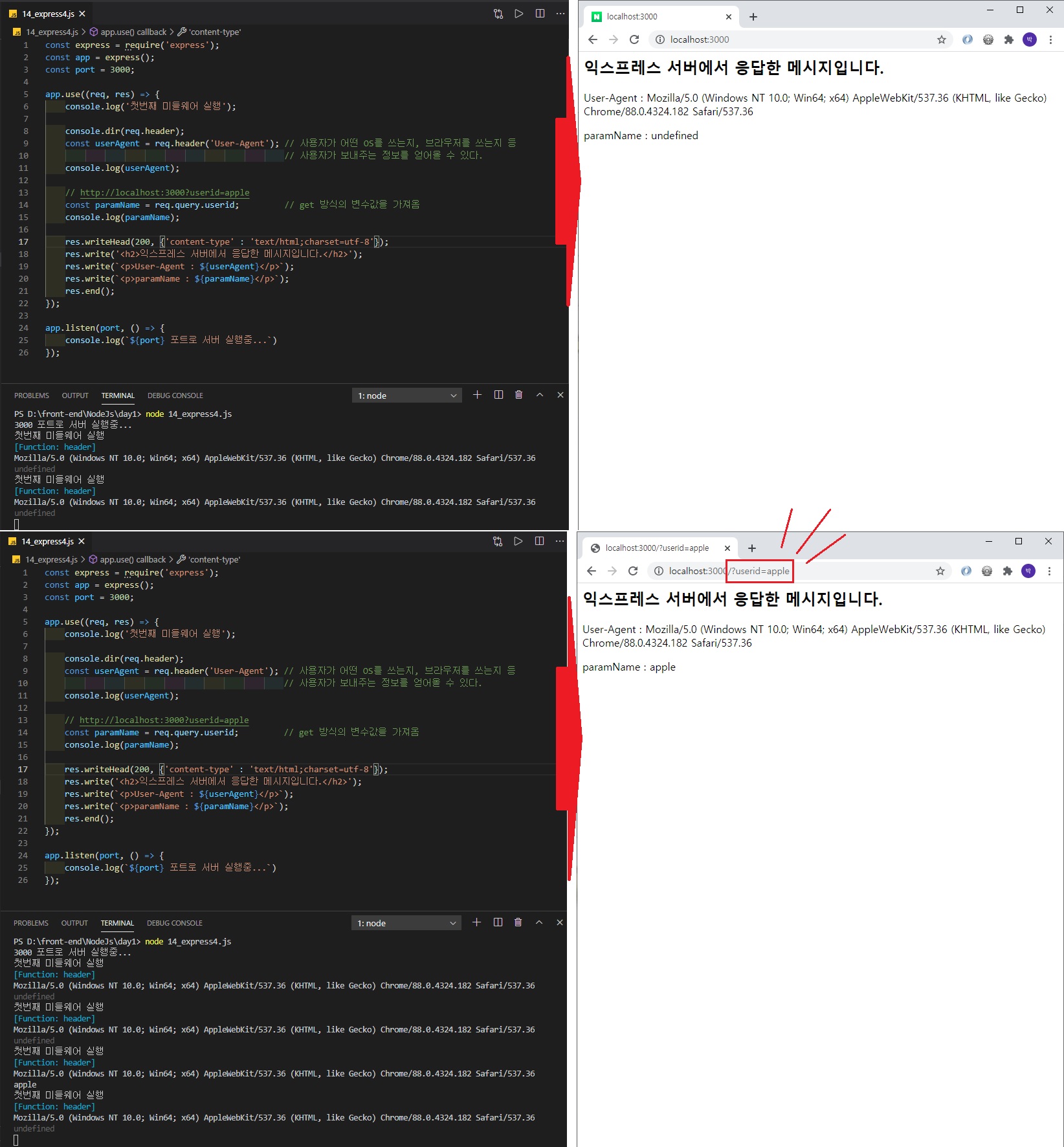 const paramName = req.query.userid; // get 방식의 변수값을 가져옴