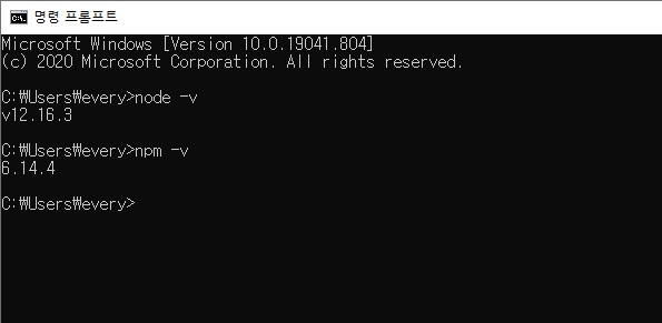 [node.js 버전 확인] cmd 창에서 node -v 명령어, [npm 버전 확인] cmd 창에서 npm -v 명령어