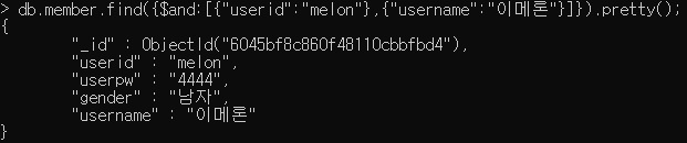 3) 아이디가 "melon"이고 이름이 "이메론"인 멤버를 검색한다.