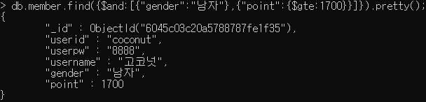 $and : 주어진 모든 조건이 true일 때 true인 결과를 찾는다.
