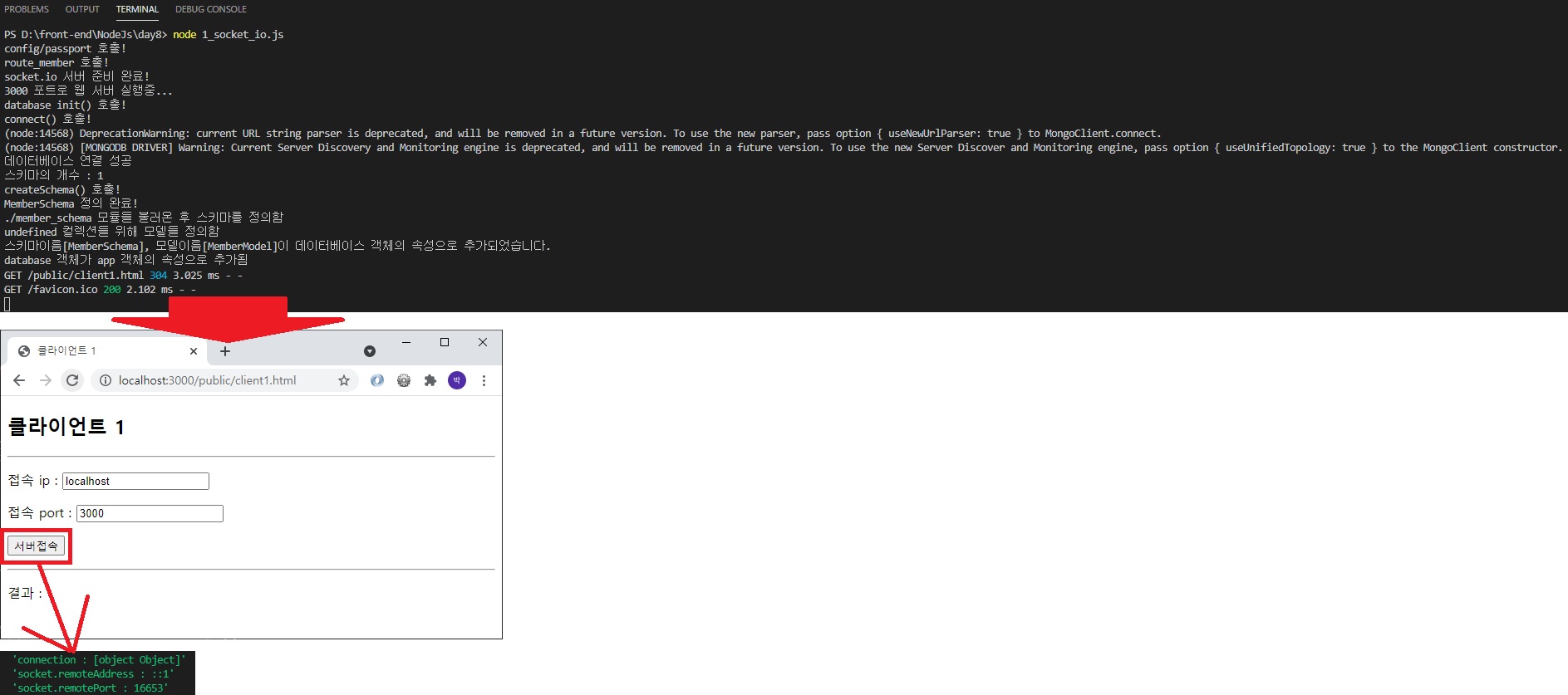 12. socket.io 클라이언트 추가(아래의 코드는 클라이언트가 서버에 붙는지 여부 확인)