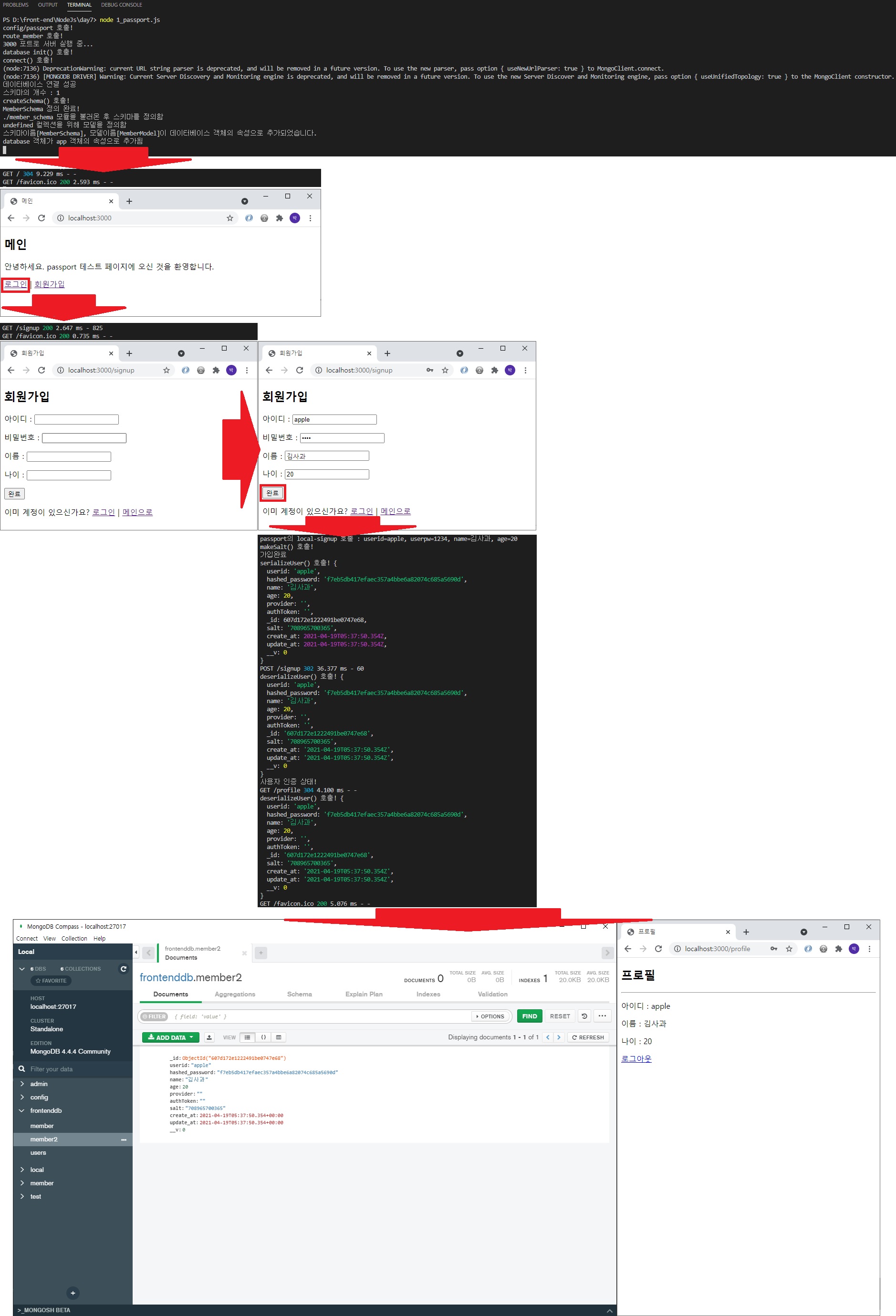 4. [저번 수업시간에 마무리 못한 부분 완료] passport 모듈을 이용한 로컬 회원가입, 로그인