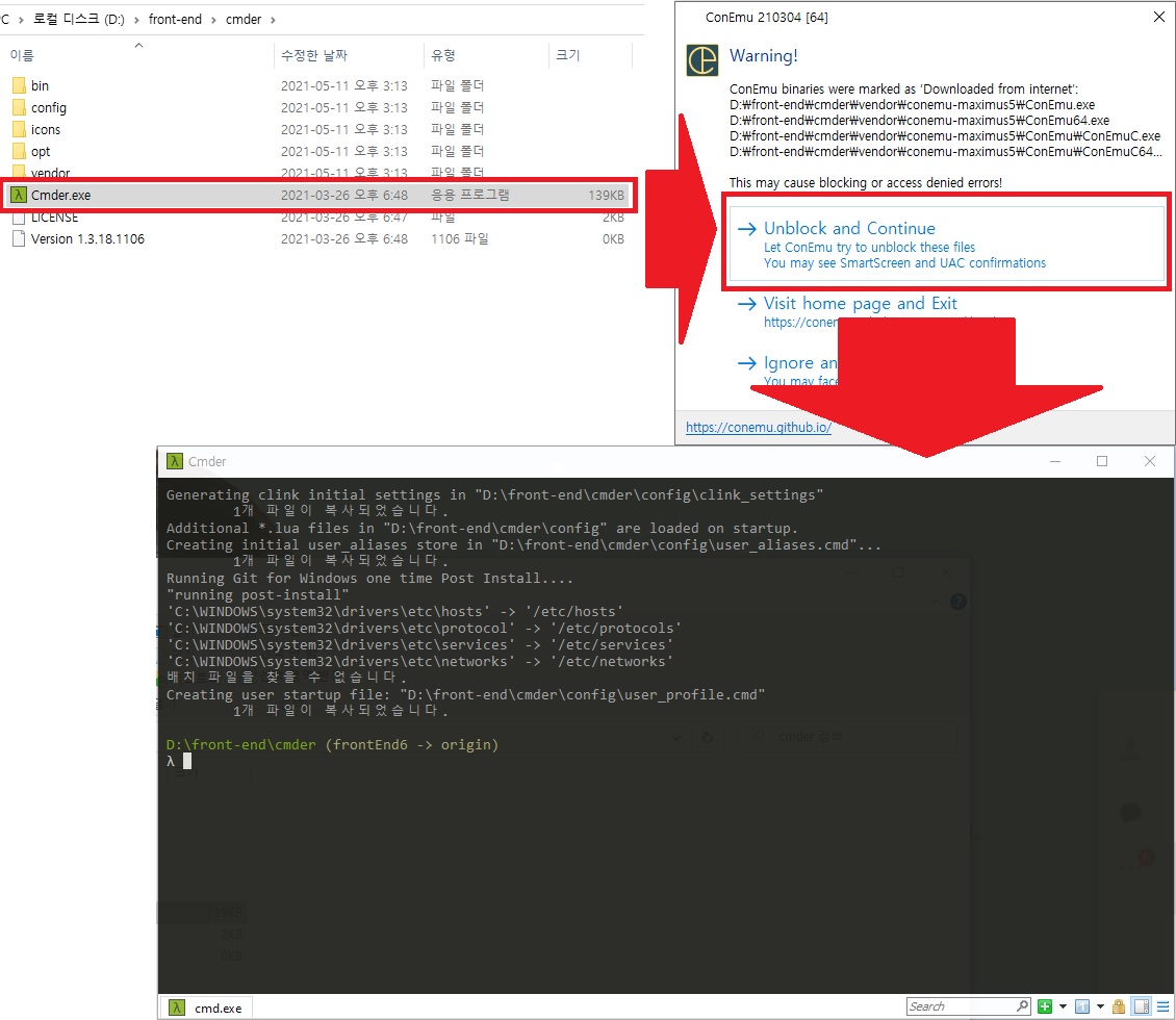 └ 윈도우용 : Cmder 다운받으러 이동하기