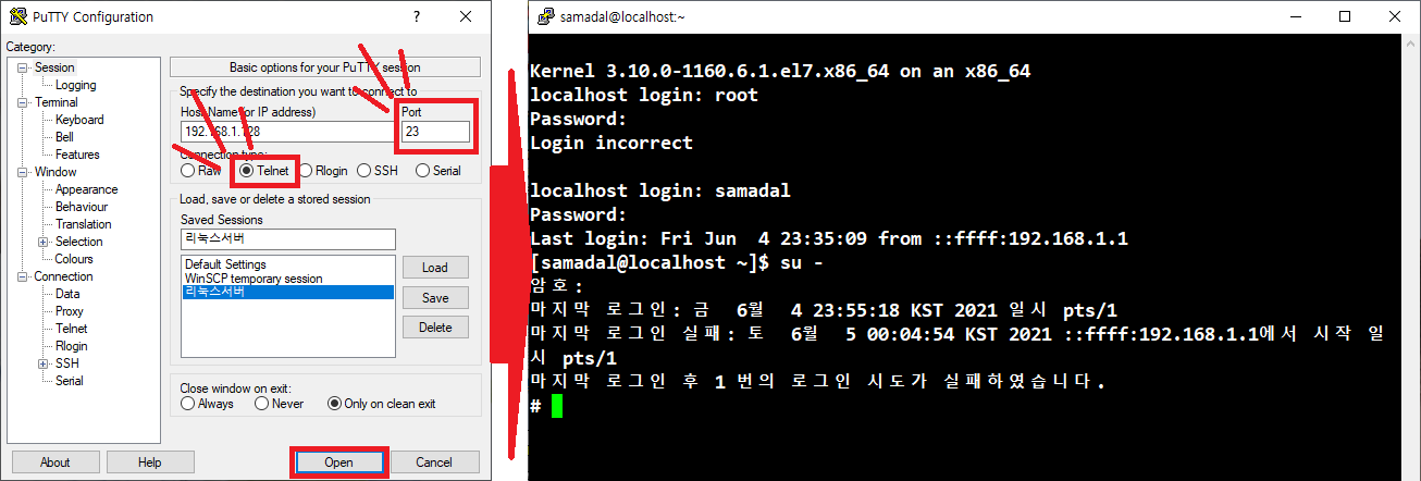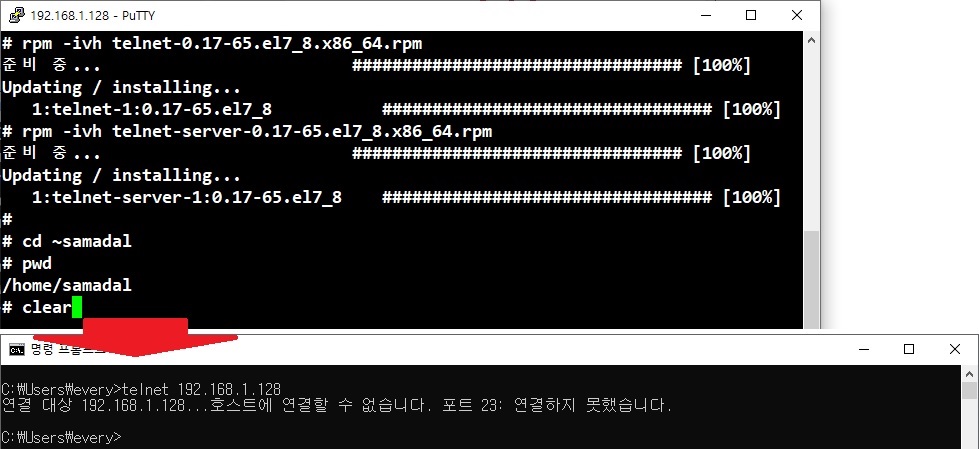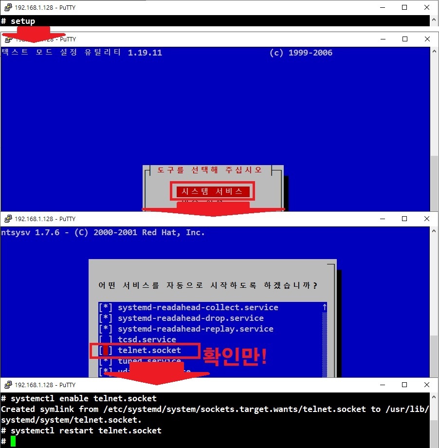** 데몬 활성화(telnet 관련한 패키지를 모두 설치해야 활성화가 가능!)