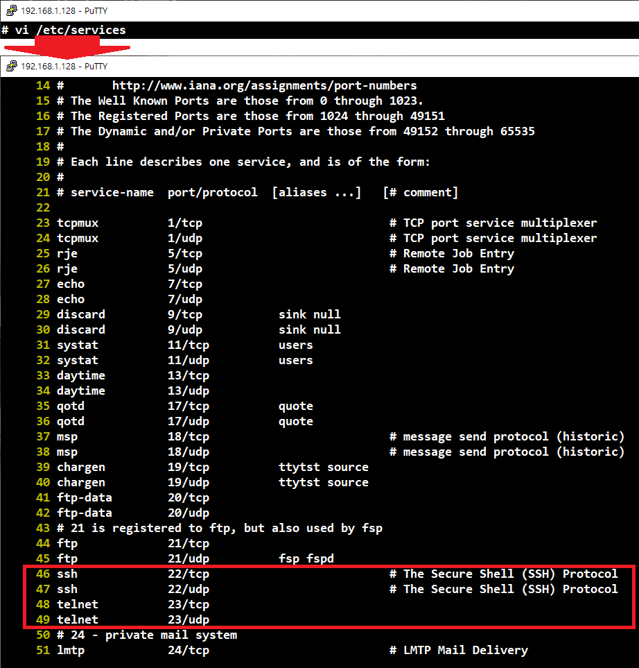 2. 포트 번호와 서비스들을 모를 때, /etc/services
