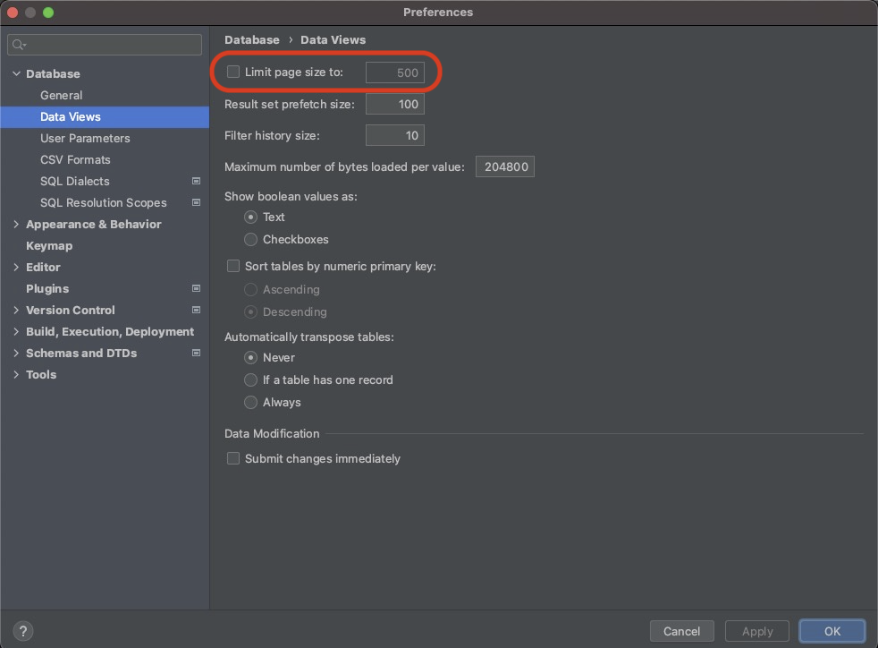 [DataGrip] 기본 500개 제한, 개수 제한 해제