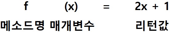 (1)리턴타입 (2)메소드명(자료형 (3)매개변수, ...) {