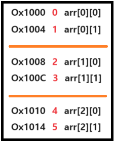 ** 2차원 배열도 메모리상에서는 1차원 형태로 존재