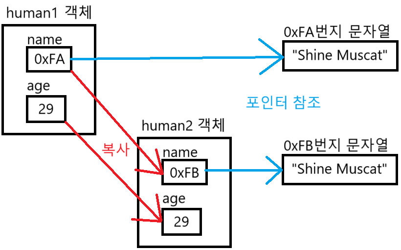 : 멤버변수가 참조하는 문자열까지 복사를 해서 각각의 객체가 완전히 별개의 문자열을 소유