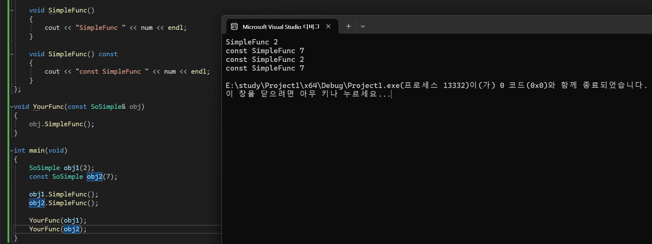ㄴ const의 선언 유무도 함수 오버로딩의 조건에 해당