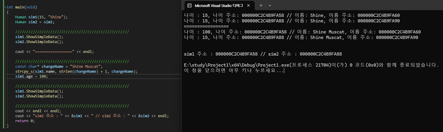 cout << "sim1 주소 : " << &sim1 << " // sim2 주소 : " << &sim2 << endl;