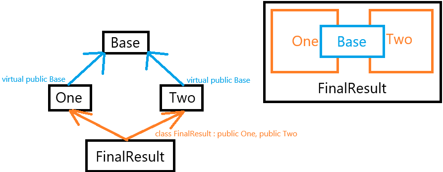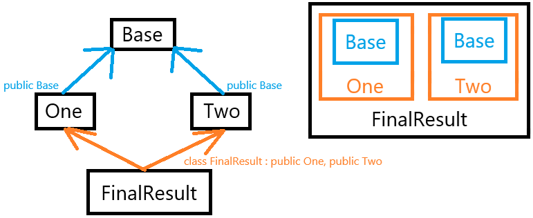 : 다중상속의 대상이 되는 두 기초 클래스에 동일한 이름의 멤버가 존재 → 문제 발생