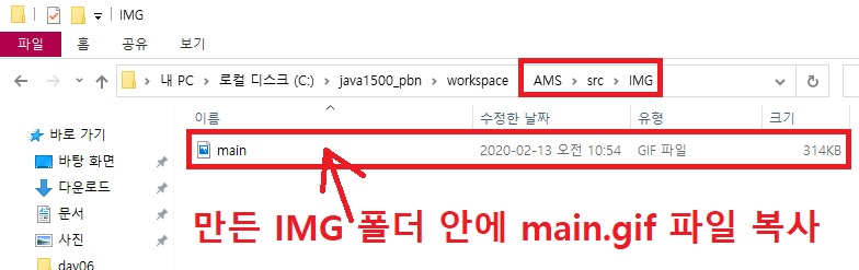 ② 만든 IMG 폴더 안에 main.gif 파일 넣기
