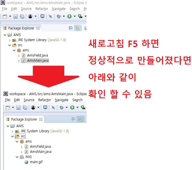 ③ 다시 이클립스로 돌아와 F5를 눌러 새로고침하면 IMG폴더와 main.gif 파일을 확인 할 수 있음